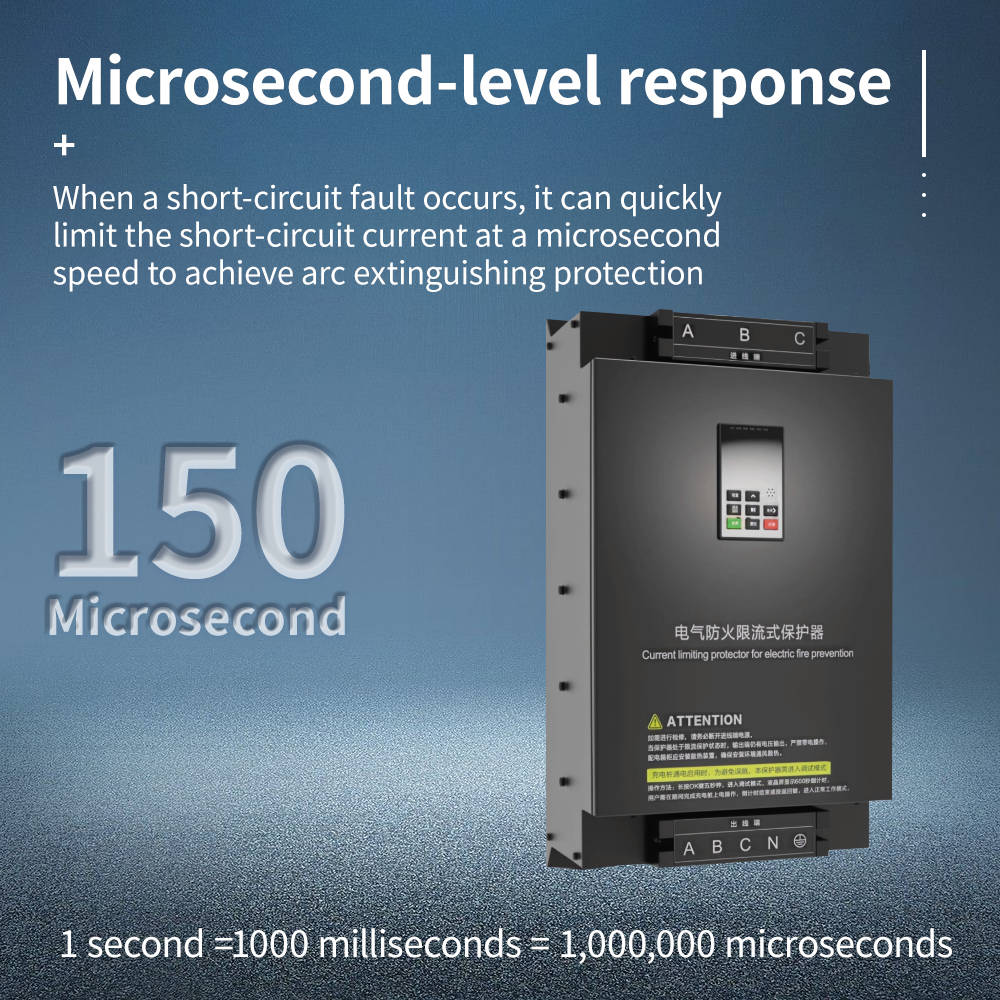 With advanced microprocessor control technology, the 250A fire protection current limiter achieves ultra-fast response (≤3ms) to instantly identify overload, short circuit and abnormal current fluctuations. It adopts selective power-off protection mechanism, which can limit the current to a safe range or cut off the faulty circuit accurately without affecting the normal operation of other non-faulty circuits. With IP54 protection level and strong anti-interference performance, it is suitable for high-power industrial equipment, large commercial buildings, data centers and other high-demand scenarios. Compliant with IEC and UL international electrical safety standards, the device combines high-current bearing capacity, intelligent digital management and wireless remote control advantages, becoming a core safety component for high-power electrical system protection.