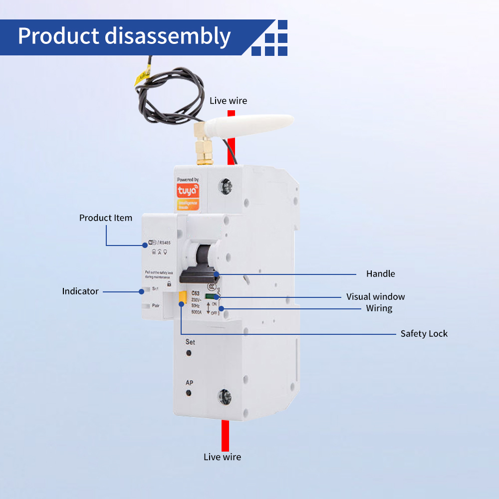 Intelligent Circuit Breaker Smart Overload Protection Circuit Breaker 1P 63A