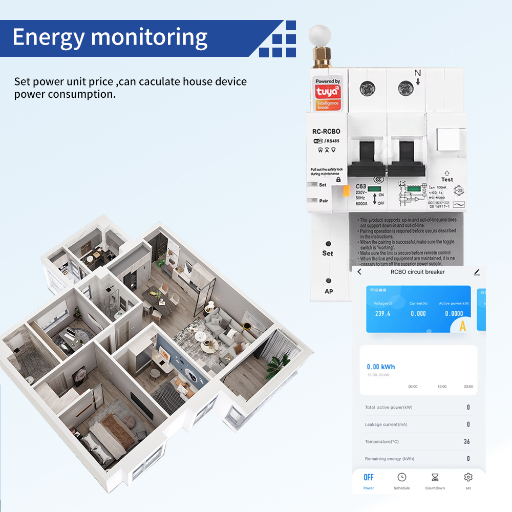 ZigBee Smart Wifi Circuit Breaker 1P 63A Measured Electricity Consumption