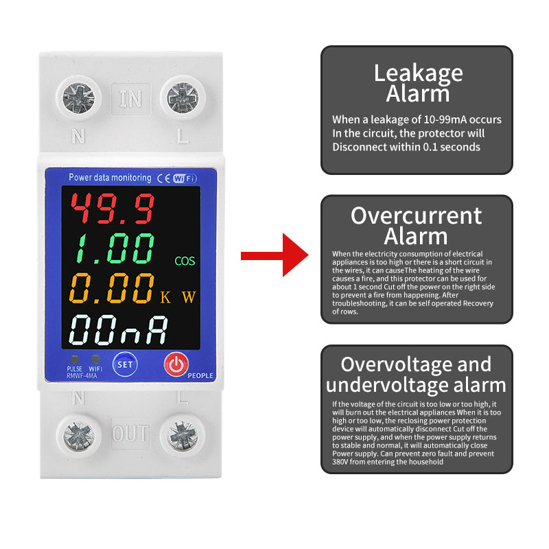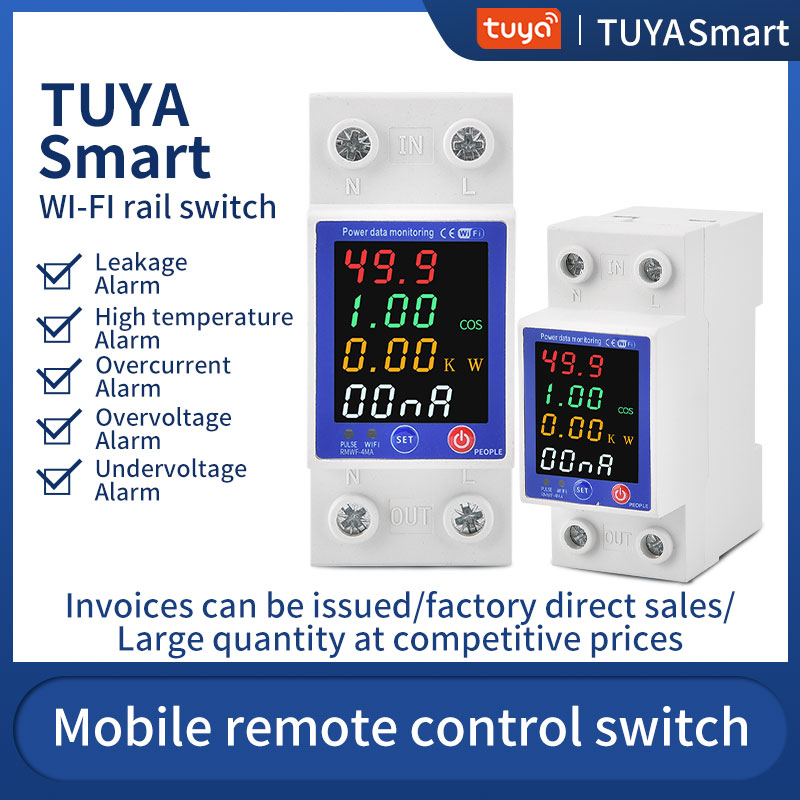 Designed for standard 35mm din rail mounting, it’s easy to install in any distribution box without complicated wiring. Built-in WiFi connectivity supports Tuya/eWeLink APP remote control, letting you turn the circuit on/off, set timer schedules, and receive instant alarm notifications for faults from anywhere. It also provides comprehensive protection against overload, short circuit, overvoltage, and undervoltage, automatically cutting off power to prevent equipment damage and safety hazards, and auto-reclosing when power returns to normal.