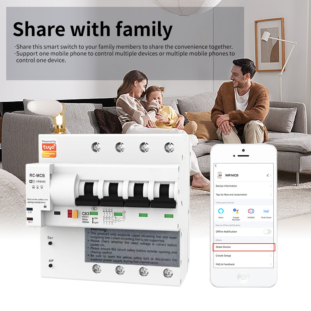 Wi-Fi Enabled Circuit Breaker Smart Overvoltage Undervoltage Circuit Breaker 4P